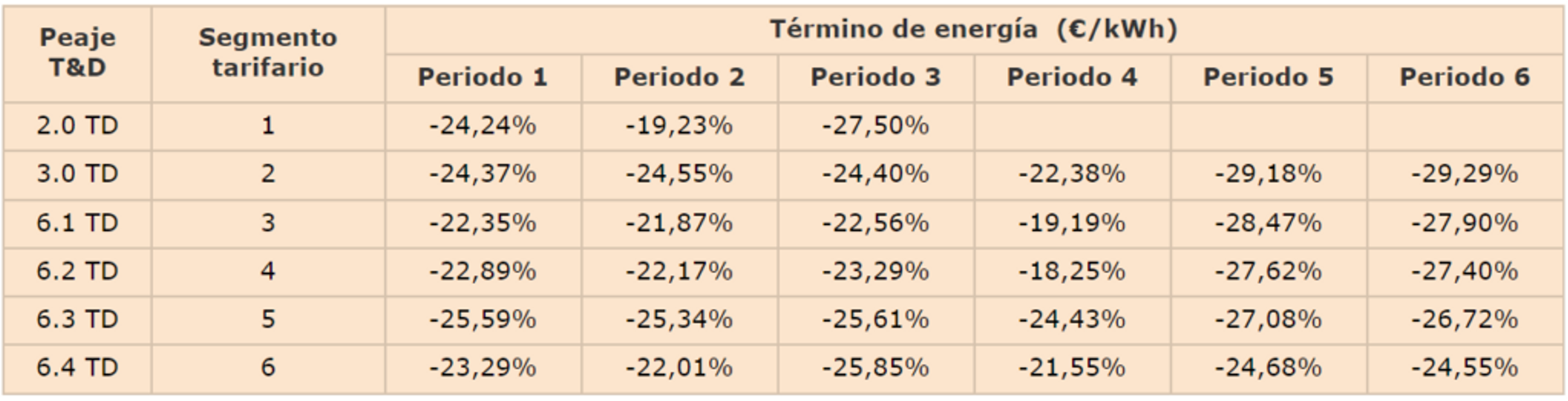 Los precios aplicables a los distintos segmentos en término de energía a partir del 1 de enero de 2022 serán los siguientes: