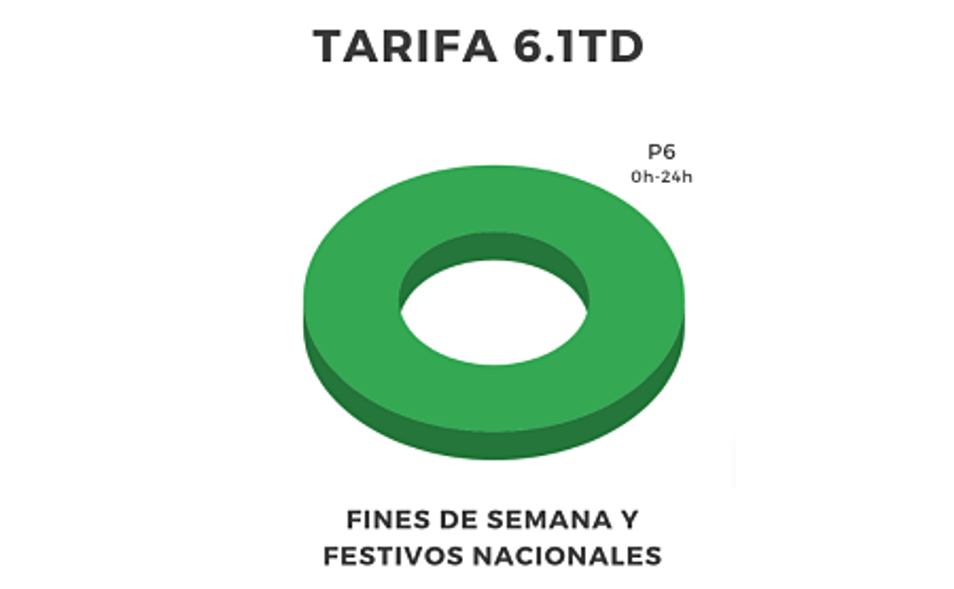 En todas las temporadas, los fines de semana y festivos nacionales serán con la tarifa más económica (P6) de 0h a 24h.